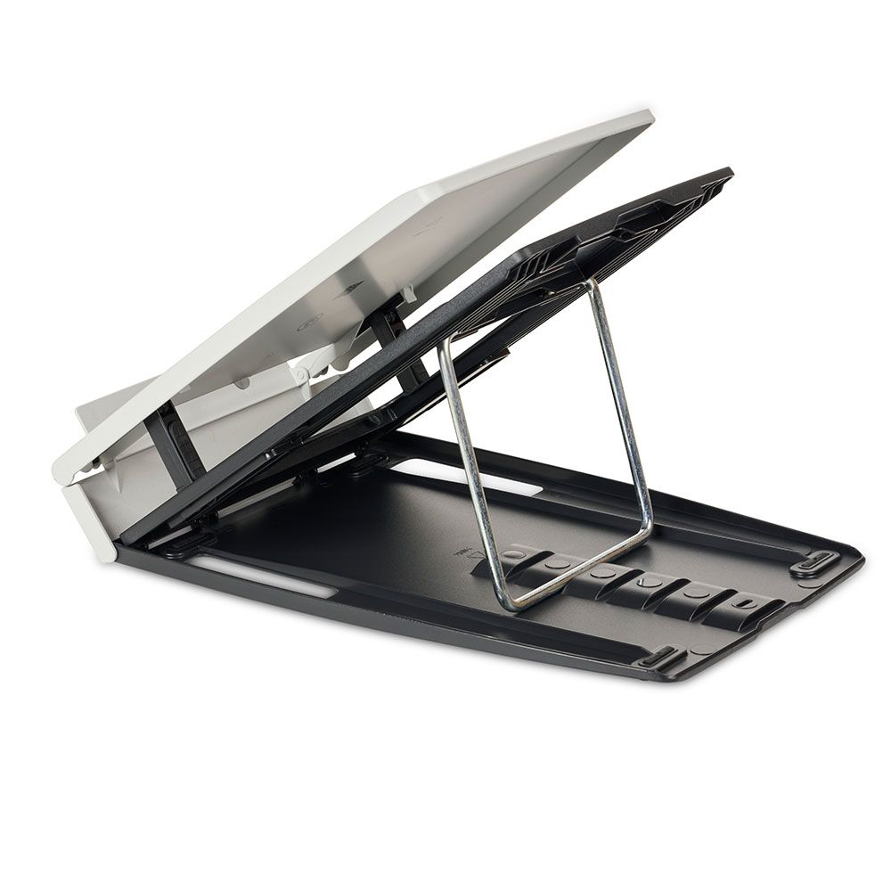 Whether you're working from the kitchen table, café or desk at home, the Ergo-Q 330 Circular gives you an ergonomic screen boost wherever you go. Lightweight yet sturdy, it raises your laptop to one of six height settings (110-190 mm) so you can work without craning your neck, and it folds down small so it slips into your backpack with ease.